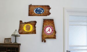 - Signs in the shape of a state with NCAA team logos