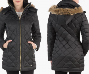 $39.99 (was $191.99) Kenneth Cole Women’s Down Coat with Faux-Fur Trim Hood