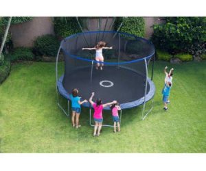 $189 (was $319) BouncePro 14′ Trampoline with Proflex Enclosure and Electron Shooter Game, Dark Blue